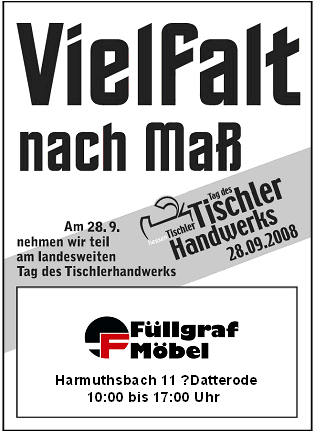 Dieser Tag gibt Ihnen die Gelegenheit, unseren Betrieb und unser Tischlerhandwerk näher kennen zulernen und verschafft Ihnen einen Einblick in unsere tägliche Arbeit.